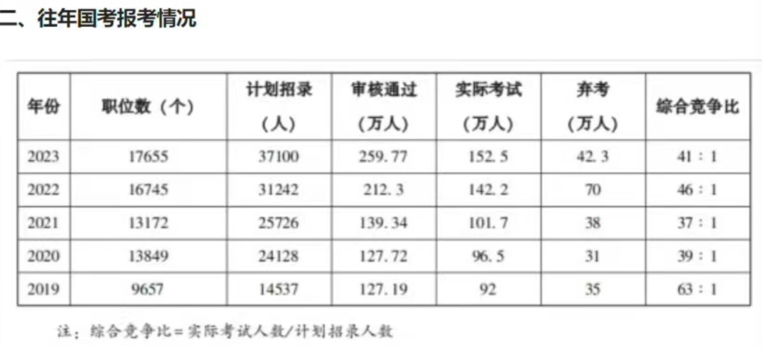 再来看看往年考公的竞争比: