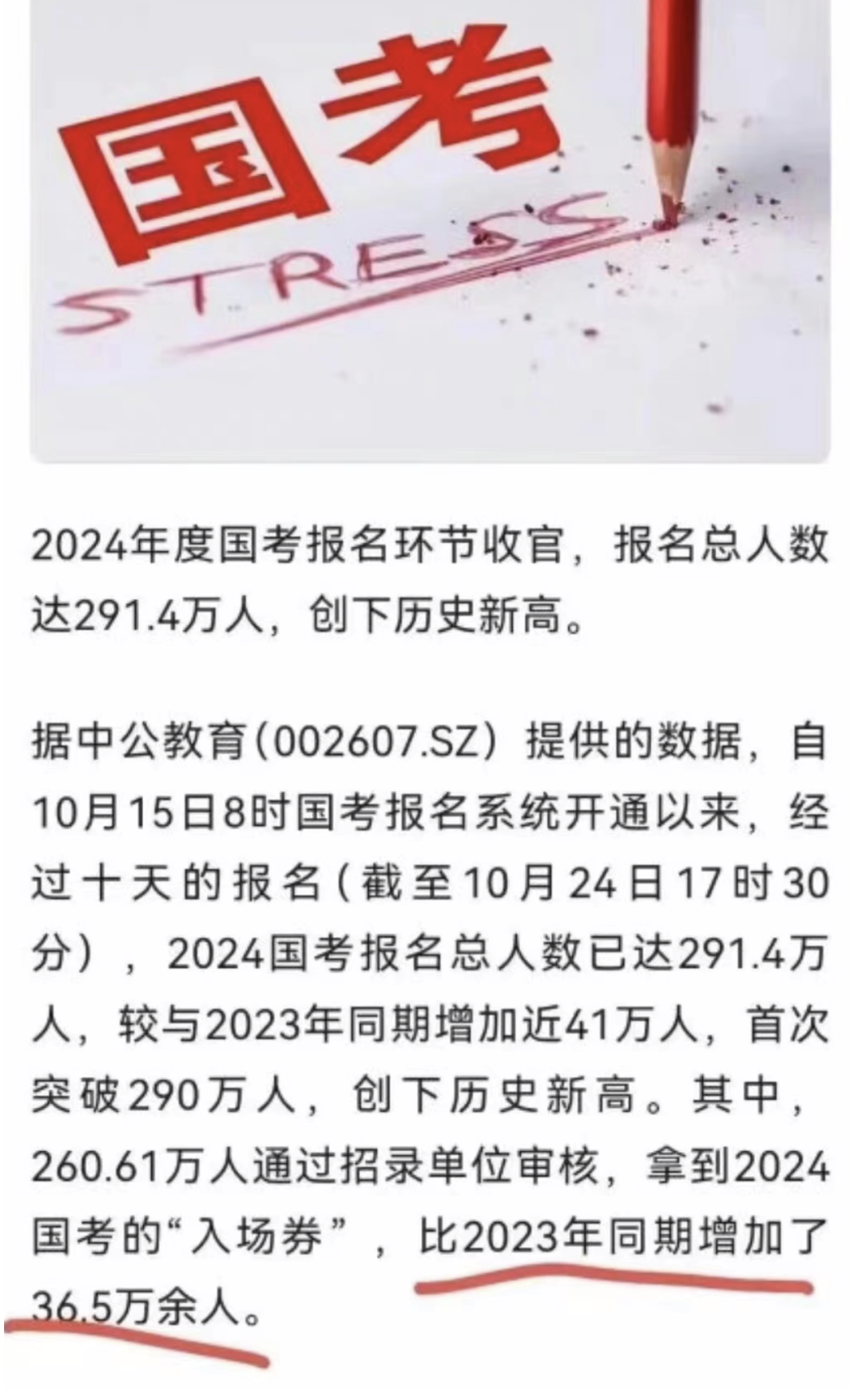 2024年国考报名人数291万,相比2023年同期增加近41万人,首次突破290万人,创下历史新高。如果把考研和国考加起来,今年和去年刚好差不多,这应该算是国内大学毕业考研考公“卷”到顶的信号了。